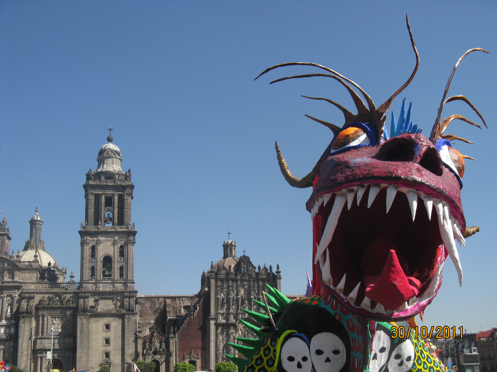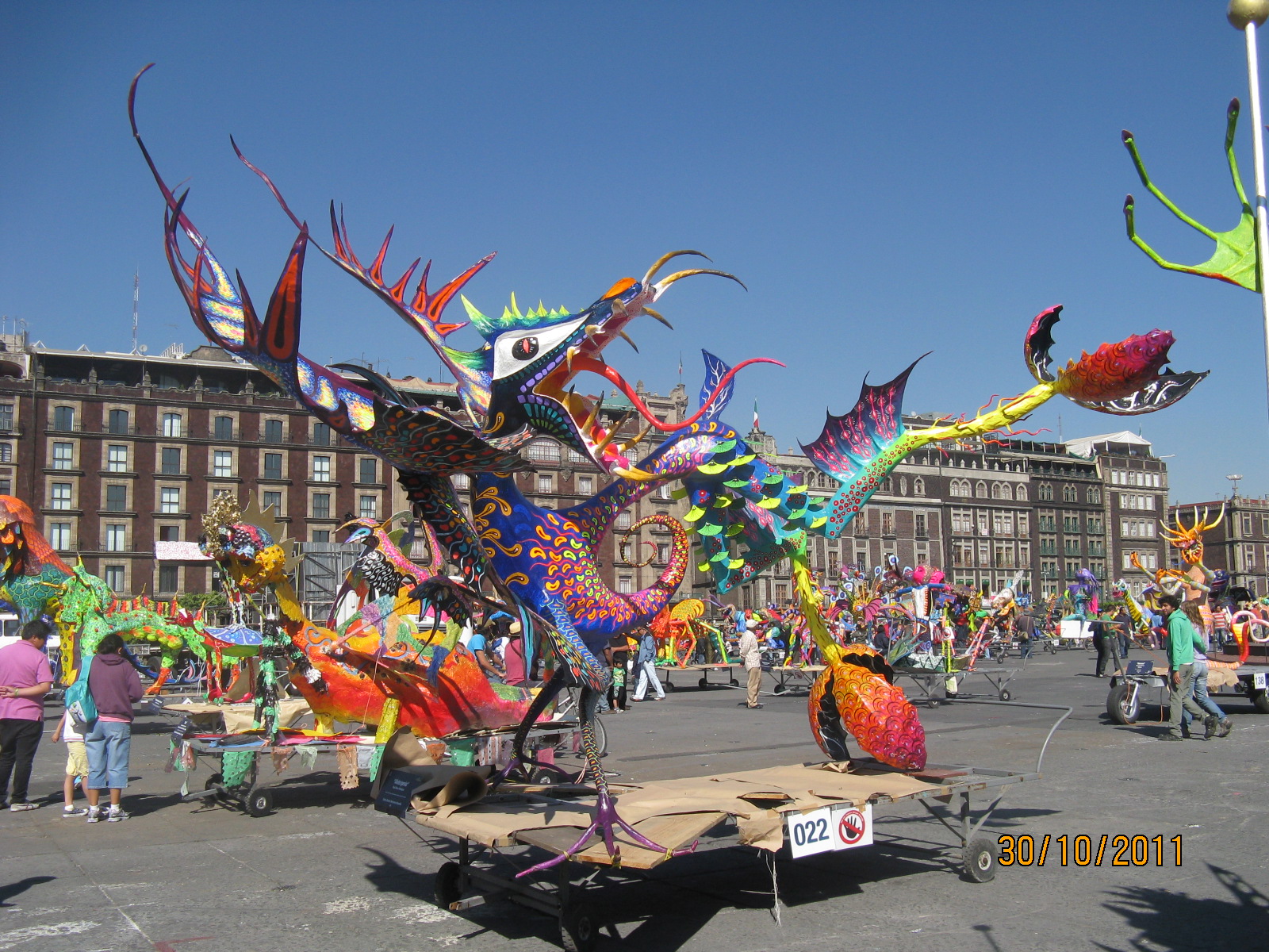 Εκθεση πολυχρομων δράκων και τεράτων στην κεντρικη πλατεία (Zocalo).