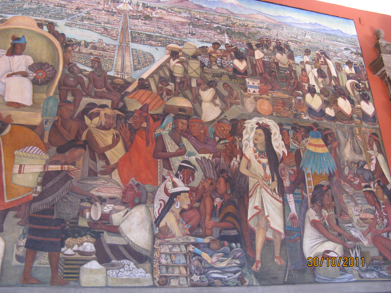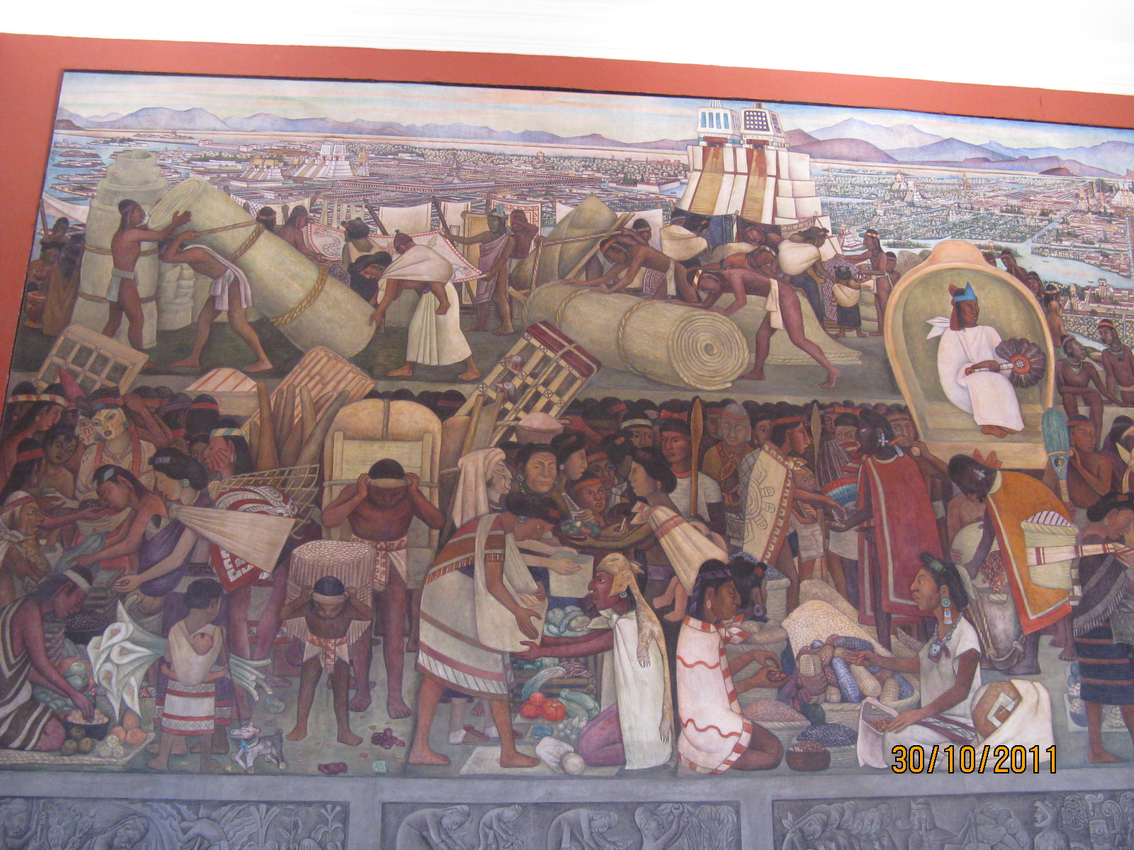 Palacio del peublo: muralles de Diego Rivera: ένα πολυπληθές με ιστορικές φιγούρες. Πολλά για την ζωή των γηγενών.