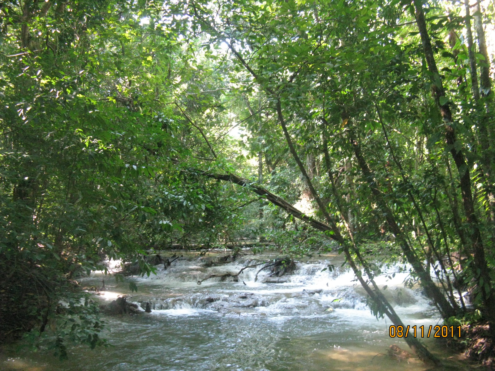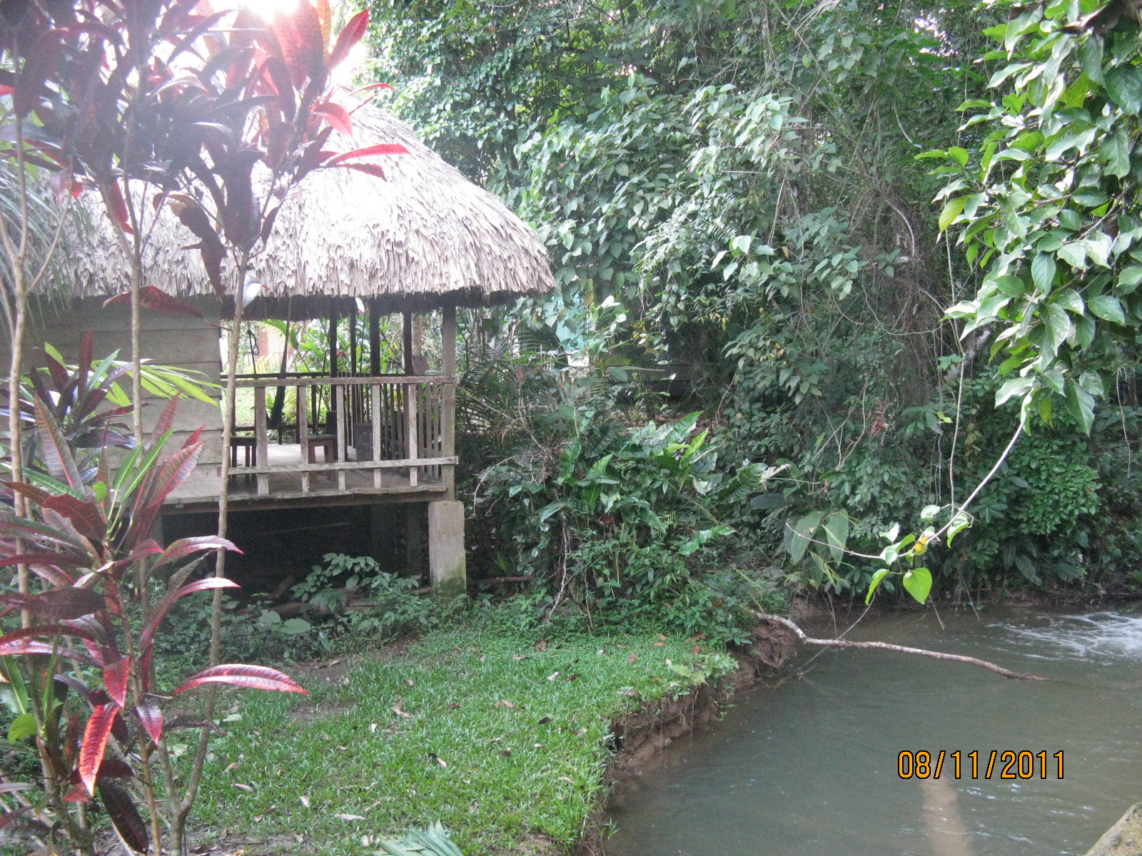 Χρειάζεται να βγάλουμε τα παπούτσια και να περάσουμε το ποτάμι απο πέτρες μέσα στο νερο. Τελικά, δεν ήταν τόσο δύσκολο όσο φάνηκε αρχικά. Στο δρόμο ο Οδυσσέας μας έδειξε μια ceba, το ιερό τους δέντρο, ψηλός κορμός σαν μια χοντρή τσιμεντένια κολόνα και φύλλωμα που απλώνει ψηλά. Οι ρίζες του απλώνουν 30-40 μετρα.
