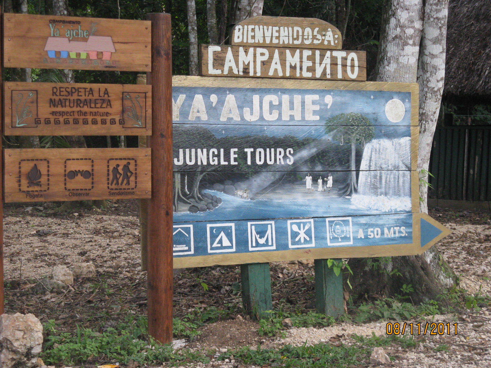 Φάγαμε μυρμήγκια με γεύση μέντας και πλούσια σε πρωτεΐνες απο μια μυρμηγκοφωλιά σε δέντρο. Κατα τ´ άλλα δεν υπήρχε ξενάγηση ή σχολιασμός. Η περιοχή έχει 70 pyramides tapadas (θαμμένες στη βλάστηση). Οι Lacandon δεν δίνουν άδειες ανασκαφής για να διατηρήσουν την φυση. Πάντως έχουν αποκλειστικό έλεγχο της περιοχής. Η αρχαιολογική, τουριστική εκμετάλλευση δεν είναι γι αυτούς προσοδοφόρα. Απο το Bonambak δεν παίρνουν τίποτα πέρα απο το ενοίκιο του χώρου. Έχουν μείνει καμιά 800 και ζουν απο το είδος του τουρισμού που μας πρόσφεραν.